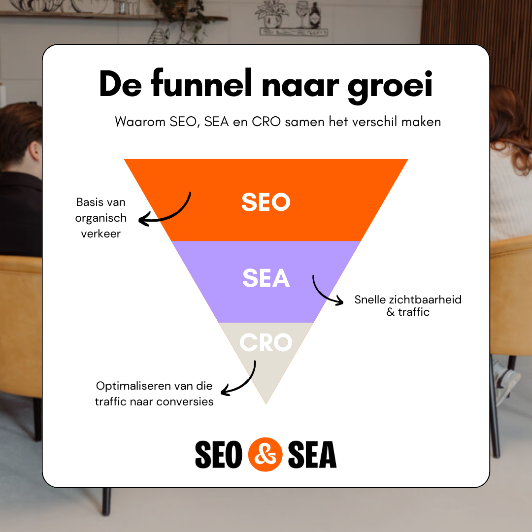 SEO alleen is niet meer genoeg. SEA zonder optimalisatie is duur. En CRO zonder verkeer levert niets op. De kracht zit in de combinatie.